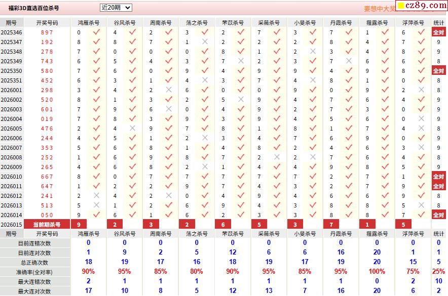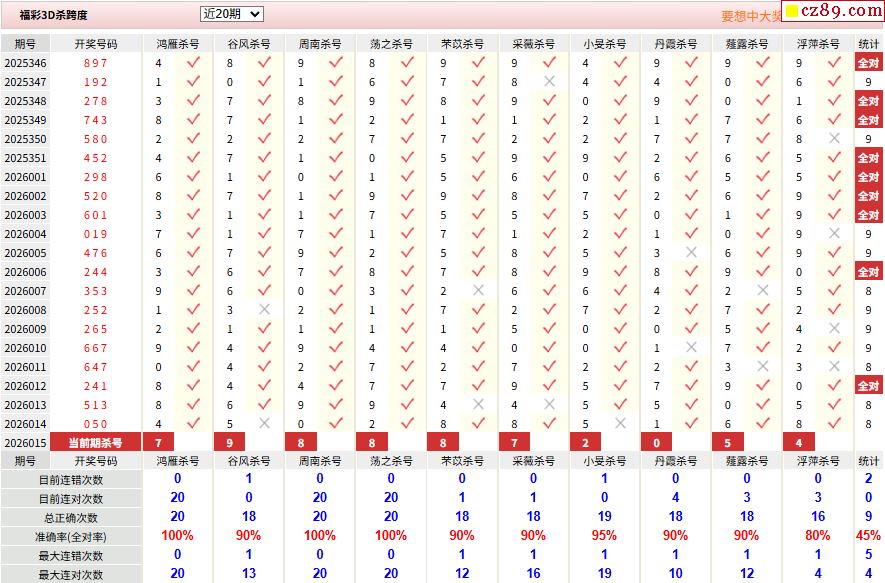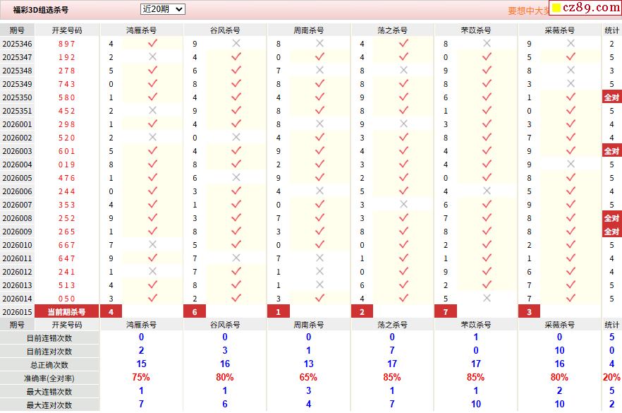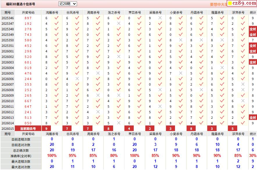 26年015期彩宝贝专家福彩3D杀号定码图表